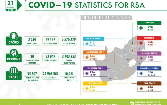 LATEST CONFIRMED CASES OF COVID-19 IN SOUTH AFRICA (21 January 2022) The National Institute for Communicable Diseases (NICD), a division of the National Health Laboratory Service, continues to provide laboratory-based surveillance to [...]